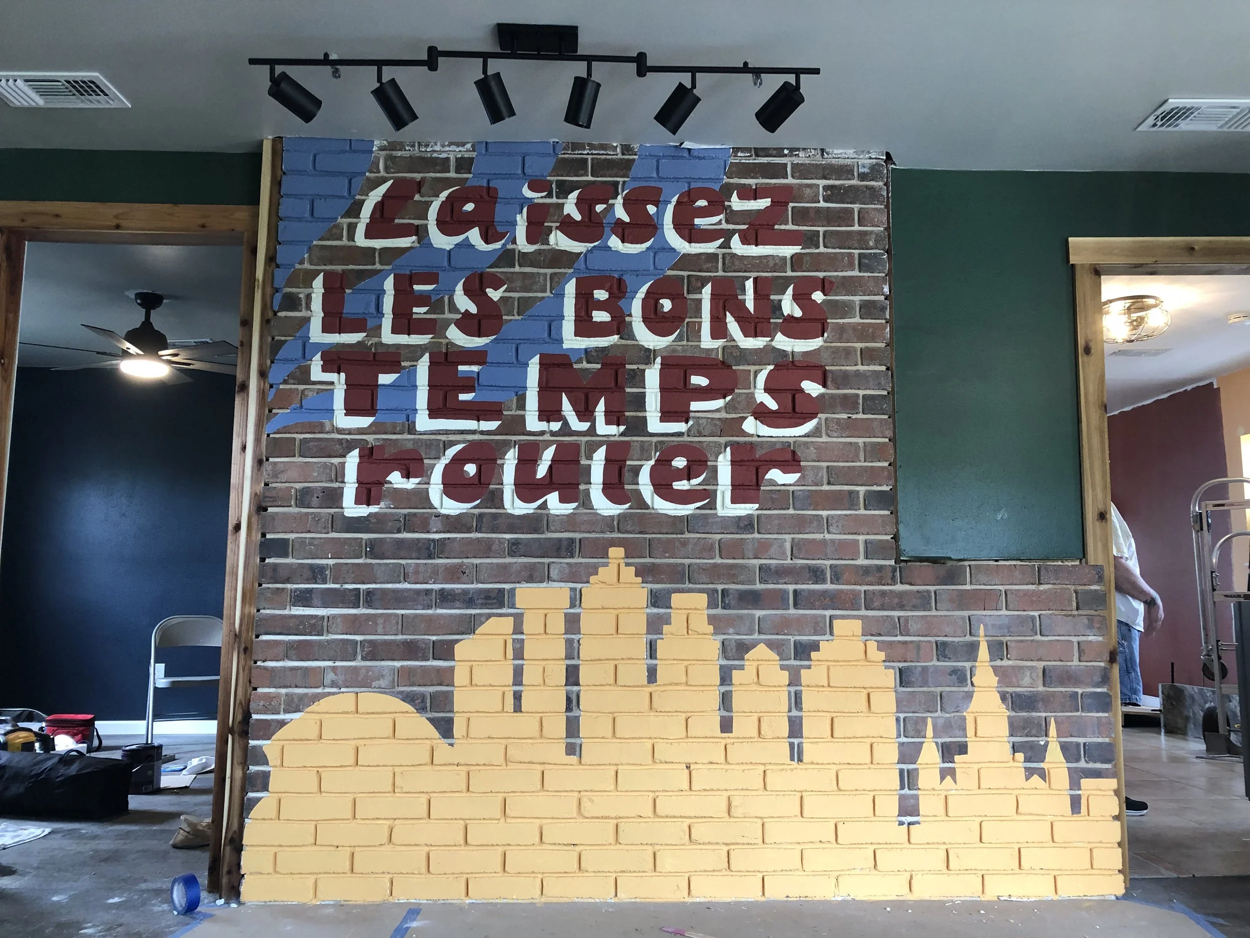 This mural features a popular New Orleans quote, “Laissez le bons temps rouler",” which translates to Let The Good Times Roll. This quote was chosen to symbolize what many New Orleans natives experience; challenging and difficult times but the ability and desire to always push through and persevere toward the good times.